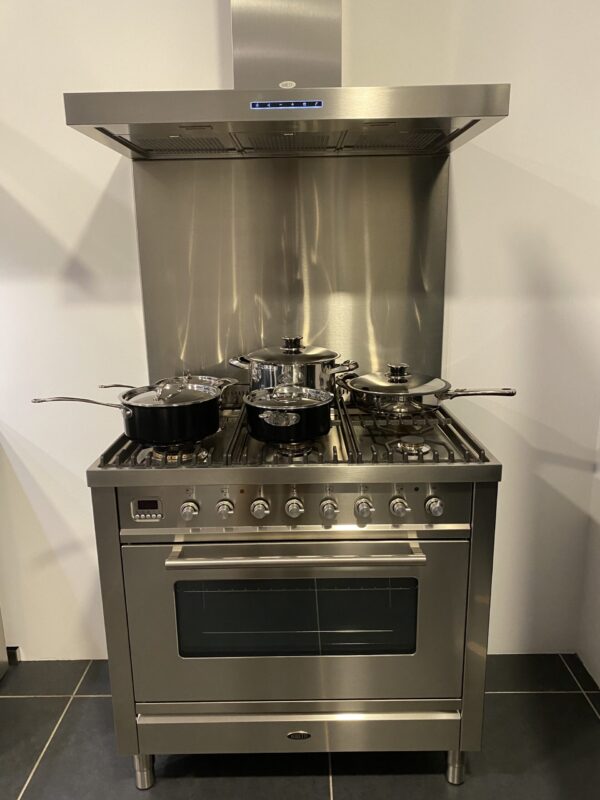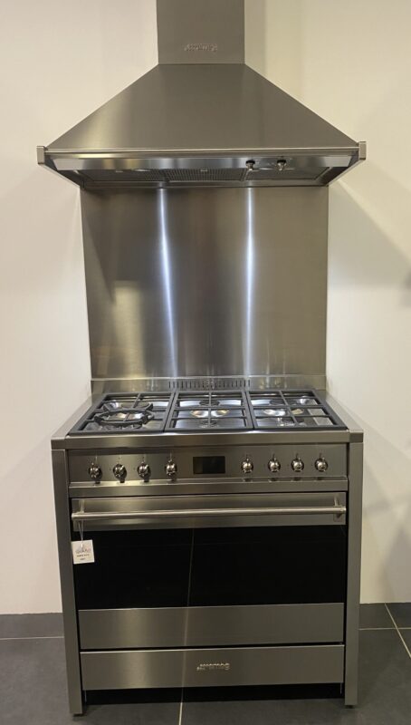 6 brûleurs + 1 four électrique, 90 cm – Inox SMEG A1-9 Line Opera.