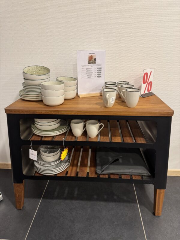 Commode en bois d’iroko et acier de haute qualité.